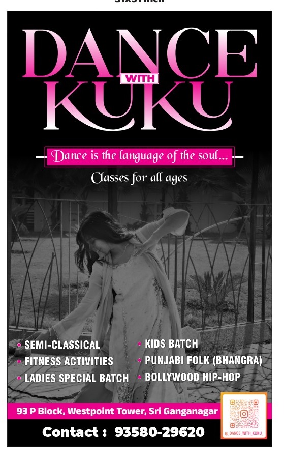 श्रीगंगानगर। नृत्य सिर्फ़ कदमों की हरकत नहीं होता, ये दिल की धड़कन और आत्मा की आवाज़ होता है, और इसी सोच को ज़मीन पर उतार रहा है श्रीगंगानगर का उभरता हुआ डांस स्टूडियो “Dance With Kuku”, जो अब हर उम्र, हर वर्ग और हर सपने को मंच देने के लिए तैयार है।शहर के 93 पी ब्लॉक, वेस्टपॉइंट टावर में शुरू हुआ Dance With Kuku उन लोगों के लिए उम्मीद की नई रोशनी है, जो नृत्य को सिर्फ़ शौक नहीं बल्कि पहचान बनाना चाहते हैं। यहाँ नन्हे बच्चों से लेकर युवाओं और महिलाओं तक के लिए अलग-अलग स्पेशल बैच शुरू किए गए हैं, ताकि हर कोई अपने अंदाज़ में खुद को एक्सप्रेस कर सके।🎶 हर स्टाइल, हर स्टेप एक ही छत के नीचेइस डांस एकेडमी की सबसे बड़ी खासियत है इसकी विविधता और प्रोफेशनल ट्रेनिंग।